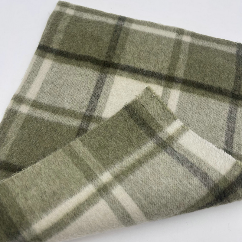 هذا القماش، المسمى بالمادة ZZH25001، عبارة عن نسيج منسوج سميك يتكون من 30% صوف و70% ألياف أخرى. مع كتلة لكل وحدة مساحة تبلغ 900 جم/م، فإن المادة تظهر كثافة ووزن كبيرين. يتميز السطح بنمط منقوش باللون الأخضر مع تأثير الظل الذي تم إنشاؤه من خلال تقنيات النسيج المتخصصة. تنتج طريقة البناء هذه عمقًا بصريًا متعدد الطبقات داخل تشكيل الشبكة. يؤثر إدراج ألياف الصوف في المزيج على خصائص التنظيم الحراري للنسيج. تؤدي هذه المواصفات الفنية إلى إنتاج قماش منسوج ثقيل الوزن ومناسب للملابس المنظمة التي تتطلب نسيجًا واضحًا وحضورًا كبيرًا.