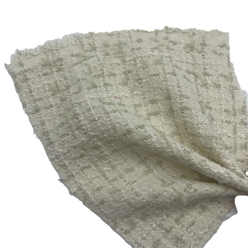 هذا القماش، المصنف بالمادة 23017، هو نسيج تويد منسوج من الجاكار يتكون من 100% بوليستر. مع كتلة لكل وحدة مساحة تبلغ 265 جرامًا للمتر المربع، فهي تقدم بنية خفيفة الوزن مناسبة للملابس النسائية. تتميز القاعدة الوردية بنمط الفراشة المدمج مباشرة في القماش من خلال عملية نسج الجاكار. تخلق هذه التقنية تعريفًا دقيقًا للزخارف داخل الهيكل المنسوج. تضمن تركيبة البوليستر بالكامل ثبات الأبعاد والأداء المتسق أثناء إنتاج الملابس. تؤدي هذه الخصائص التقنية إلى نسيج ذو نمط مفصل واضح وسلامة هيكلية، مما يجعله قابلاً للتطبيق على عناصر الملابس التي تتطلب عناصر تصميم مفصلة وموثوقية المواد.