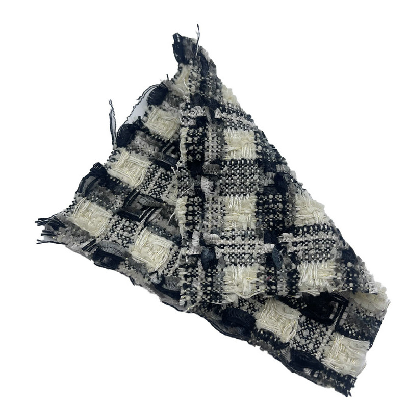 هذا القماش، المصنف بالمادة 22042، هو نسيج تويد منسوج يتكون من 48% أكريليك، 36% بوليستر، و16% نايلون. مع كتلة لكل وحدة مساحة تبلغ 450 جرامًا للمتر المربع، فهي تقدم بنية متوسطة إلى ثقيلة الوزن. يتميز السطح بنمط منقوش ناعم باللونين الأسود والرمادي تم تحقيقه من خلال تقنيات النسيج الدقيقة، مما يخلق بنية شبكية موحدة. يساهم الأكريليك في ارتفاع النسيج، ويوفر البوليستر ثبات الأبعاد، ويعزز النايلون المتانة. ينتج عن مزيج الألياف هذا مادة ذات سلامة هيكلية ومقاومة للتآكل. هذه المواصفات الفنية تجعل هذا التويد المنسوج قابلاً للتطبيق في تصنيع المعاطف حيث يتطلب الأمر نقشًا محددًا وأداء طويل المدى.