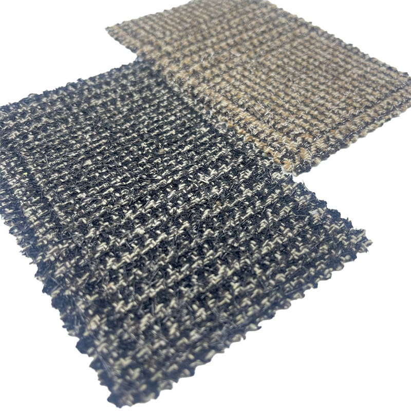 هذا القماش، المدرج في المادة 4336، هو نسيج تويد يتكون من 5% صوف و95% ألياف أخرى. مع كتلة لكل وحدة مساحة تبلغ 550 جم/م2، فإنه يقدم بناء ثقيل الوزن. يجمع السطح الأسود والبني بين نمط المربعات ونمط مربعات، مدمج مع خيوط معدنية أثناء عملية النسيج. تخلق هذه التقنية تصميمًا مركبًا حيث يتم إبراز الأنماط الهندسية بواسطة عناصر عاكسة للضوء. يقدم إدراج الخيوط المعدنية تأثيرات بصرية متناقضة مع القاعدة المنسوجة. تؤدي المواصفات الفنية إلى مادة ذات تعقيد بصري متعدد الطبقات وكثافة هيكلية، مما يجعلها قابلة للتطبيق في المشاريع التي تتطلب تفصيل الأنماط وتنوع السطح.