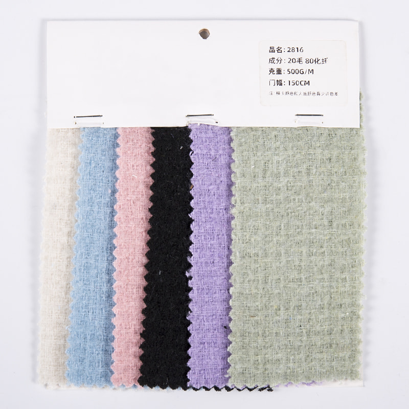 يمنح الصوف عالي الجودة المختار بنسبة 20% فرشاة الموضة الجديدة قماش التويد الصوفي الفخم 2816 لمسة دافئة طبيعية وتهوية ممتازة. كما تمنح الخصائص الطبيعية للصوف النسيج امتصاصًا جيدًا للرطوبة وأداءً للعرق، مما يحافظ على الجسم جافًا ومرتاحًا حتى في الظروف الجوية المتغيرة. يعد مكون الألياف الكيميائية عالي الأداء بنسبة 80% هو مفتاح الابتكار والمتانة في نسيج 2816. بفضل مقاومتها الممتازة للتآكل، ومقاومة التجاعيد وخصائص العناية السهلة، تضمن الألياف الكيميائية أن القماش لا يزال يحتفظ بمظهره وملمسه الجديد بعد الاستخدام طويل الأمد. وهذا لا يطيل عمر خدمة القماش فحسب، بل يجعل العناية اليومية سهلة وبسيطة أيضًا. سواء كان الغسيل في الغسالة أو الغسيل اليدوي، يمكن التعامل معه بسهولة، مما يوفر الوقت والقلق. يُظهر نسيج التويد الصوفي الفاخر، بعملية نسج فريدة من نوعها ومطابقة الألوان، سحرًا فريدًا من نوعه. تم الجمع بين نسيج التويد وتصميم القطيفة المصقولة بذكاء، وهو لا يحتفظ بالسحر الكلاسيكي للتويد التقليدي فحسب، بل يتضمن أيضًا عناصر الموضة الحديثة. سواء كانت تصنع معاطف راقية أو فساتين أنيقة أو بناطيل غير رسمية، يمكنها بسهولة التعامل مع مختلف المناسبات وإظهار الذوق الفريد لمرتديها ومزاجه الاستثنائي.