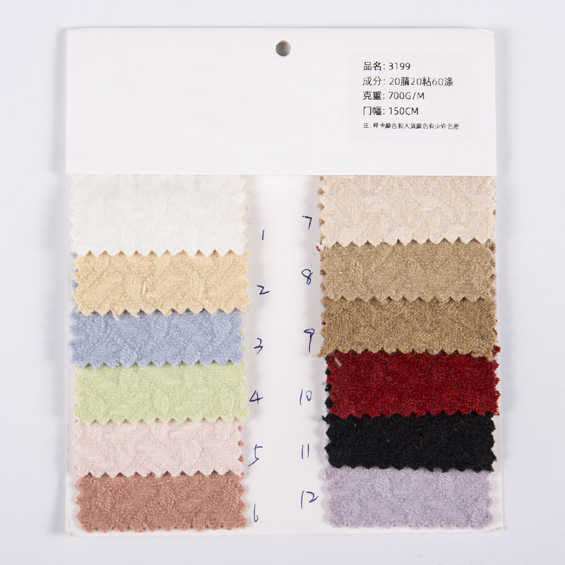 نسيج تويد أكريليك فيسكوز بوليستر ناعم الملمس للمعاطف 3199 عبارة عن مزيج من 20٪ أكريليك و 20٪ فيسكوز و 60٪ بوليستر. لا تضمن هذه النسبة الذهبية متانة القماش ومقاومته للتجاعيد فحسب، بل تمنحه أيضًا نعومة لا مثيل لها وملاءمة للبشرة. إضافة الأكريليك تجعل القماش دافئًا مع توفير تهوية جيدة، مما يسمح لك بالشعور بالراحة حتى في المواسم الباردة. يضيف الفيسكوز بنسبة 20%، بخصائص الألياف الطبيعية، امتصاصًا ممتازًا للرطوبة وتهوية للنسيج، مما يجعله أكثر راحة في الارتداء. تمنح النسبة العالية من البوليستر بنسبة 60% هذا النسيج مرونة ممتازة ومقاومة للتآكل، مما يمكن أن يبقي القماش مسطحًا ونقيًا سواء كان للارتداء اليومي أو الأنشطة طويلة الأمد. عملية نسج التويد تجعل سطح القماش يقدم ملمسًا وملمسًا فريدًا، مما يضيف عنصر أزياء فريدًا إلى تصميم المعطف. هذا القماش مناسب لصنع معاطف بمختلف الأنماط، سواء كانت سترة واقية كلاسيكية أو معطفًا كاجوال عصريًا، ويمكن التحكم فيه بسهولة. ستصبح ملمسها الناعم واحتفاظها بالدفء الممتاز ومظهرها العصري أهم ما يميز ملابسك الشتوية.