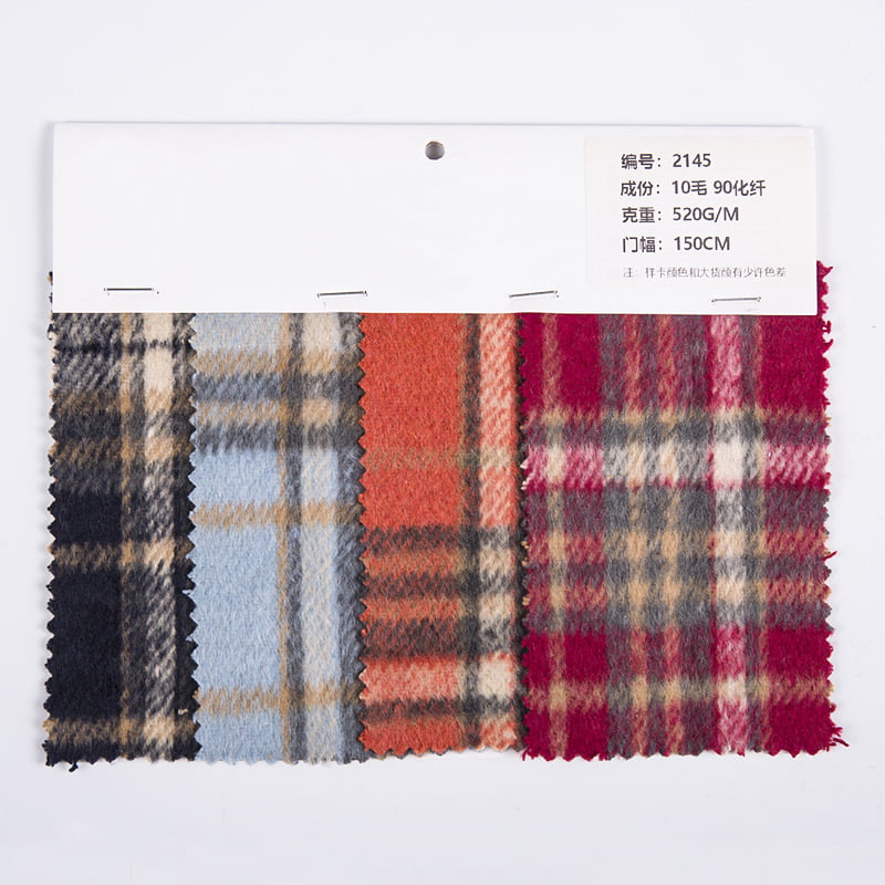 يعتمد نسيج الترتان المنقوش على النوافذ متعدد الألوان من الصوف والبوليستر تويد 2145 على تصميم منقوش اسكتلندي فريد من نوعه، والذي يجمع بذكاء بين العناصر التقليدية والحديثة لإظهار أسلوب فريد وأنيق. نمط جزء النافذة متدرج والألوان غنية ومتنوعة. المكونات الرئيسية للنسيج هي 10% صوف عالي الجودة و90% ألياف كيميائية عالية الجودة. إضافة الصوف تمنح القماش نعومة ودفء طبيعيين، كما أن الملمس رقيق ومريح، كما لو أنه يمكنه التقاط نسيم وأشعة الشمس في المرتفعات الاسكتلندية. يضمن مكون الألياف الكيميائية بنسبة 90% مقاومة التآكل ومقاومة التجاعيد وسهولة العناية بالنسيج. إن إضافة الألياف الكيميائية لا تعمل على تحسين متانة النسيج فحسب، بل تجعل النسيج العام أكثر وضوحًا وأنيقًا، ومن السهل تشكيل أشكال عصرية مختلفة. عملية نسج التويد تجعل هذا القماش أكثر تميزًا. ينسج الغزل المتين نسيجًا وملمسًا فريدًا، مما يضيف القليل من السحر القديم والقوي إلى الملابس. وفي الوقت نفسه، هذه العملية أيضًا تجعل القماش أكثر تهوية، ويمكن أن يحافظ على شعور مريح للجسم حتى في المواسم الباردة.