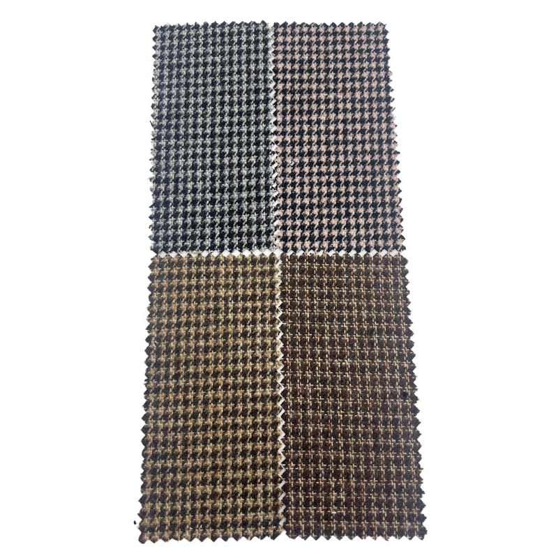 هذا القماش، المدرج في المادة 4334، هو نسيج تويد منسوج يتكون من 35% صوف و65% ألياف أخرى. مع كتلة لكل وحدة مساحة تبلغ 450 جم/م2، فإنه يقدم بنية متوسطة الوزن. يجمع السطح بين نمط مربعات مع عناصر مربعة، مما يخلق تصميمًا هندسيًا مركبًا من خلال تقنيات النسيج الدقيقة. تنتج طريقة البناء هذه مربعات متشابكة مكسورة مع تباين ألوان محدد عبر القماش. تساهم تركيبة مزيج الصوف في ثبات أبعاد القماش ومقاومته للتجاعيد. تؤدي هذه الخصائص التقنية إلى إنتاج مادة ذات نمط مفصلي معقد ومتانة هيكلية، مما يجعلها قابلة للتطبيق على السراويل التي تتطلب أنماطًا تفصيلية وأداء طويل الأمد.
