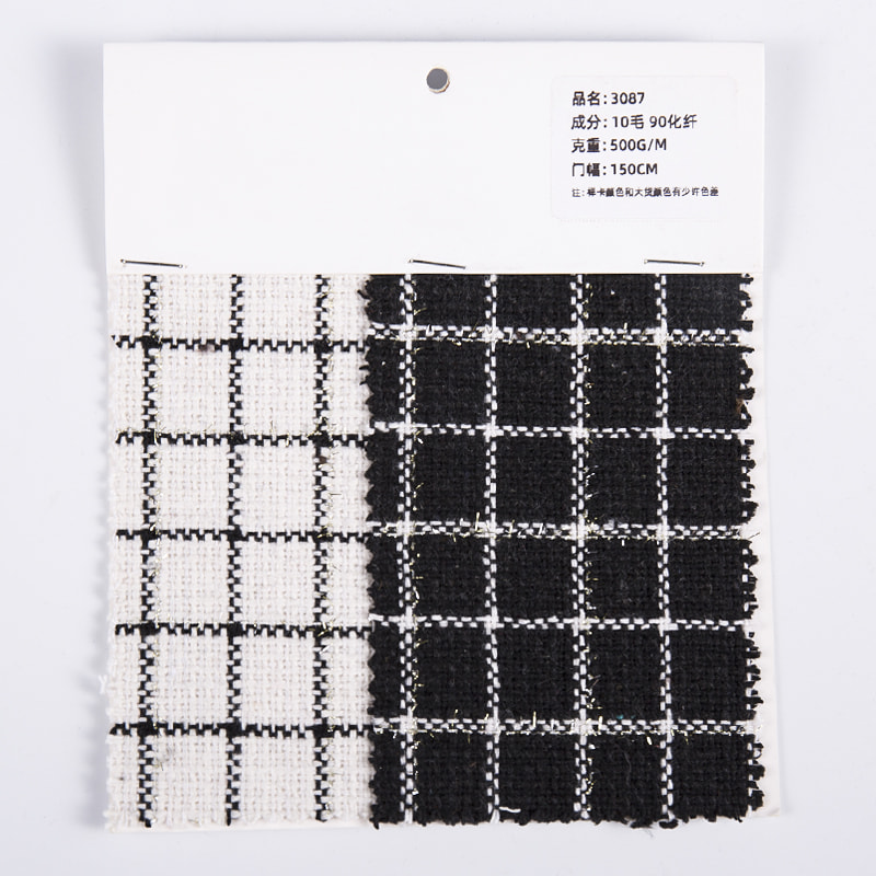 إن تقنية نسج الخيوط المعدنية المبتكرة المدمجة في نسيج التويد المصنوع من ورق النوافذ من الصوف المعدني المنسوج 3087 هي اللمسة النهائية لهذا القماش. تحت إضاءة الضوء، يتدفق البريق المعدني ويضيء، مما يضيف تألقًا ونبلًا لا يتكرر إلى الكل. هذا التأثير اللامع الفريد يجعل الملابس أو ديكور المنزل محط تركيز بصري في أي مناسبة. عملية نسج نمط ورق النافذة معقدة وحساسة، وكل غرزة وكل خيط يكثف العمل الجاد وحكمة الحرفي. تصميم النمط مستوحى من شبكة النافذة الكلاسيكية. وبعد إعادة تفسيره باستخدام تقنيات التصميم الحديثة، فإنه لا يحتفظ بالسحر التقليدي فحسب، بل يشتمل أيضًا على عناصر الموضة، مما يُظهر جماليات حرفية لا مثيل لها وسحر التفاصيل. إن قماش التويد المصنوع من الصوف المعدني المنسوج 3087 ليس مناسبًا فقط للأزياء المخصصة الراقية، مثل المعاطف الأنيقة والفساتين الرائعة وما إلى ذلك، ولكن نسيجه ونمطه الفريد مناسب أيضًا لمجال المفروشات المنزلية الناعمة. سواء تم استخدامها كستارة أو غطاء أريكة أو وسادة، يمكنها أن تضفي جوًا فنيًا قويًا وأسلوبًا فاخرًا على المساحة، مما يحقق مزيجًا مثاليًا من الموضة والعملية.