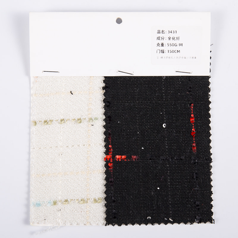 3431 شبكة نافذة منسوجة من قماش التويد ذو خيوط الفراشة تعتمد على تكنولوجيا النسيج المتقدمة. تم نسج كل بوصة من القماش بعناية لتشكيل نمط شبكة نافذة فريد من نوعه، وهو رقيق ومتعدد الطبقات. يتضمن عنصر شبكة النافذة الأناقة الكلاسيكية والجمال الشفاف، مما يضيف سحرًا كلاسيكيًا نادرًا لتصميم الملابس الحديثة. القماش مرصع بذكاء بعدد لا يحصى من الترتر الرقيق والمشرق. تحت الضوء، ينبعث هذا الترتر ضوءًا مبهرًا، مثل ألمع النجوم في سماء الليل، مما يضيف فخامة وخيال لا نهاية له إلى التصميم العام. مع مادة التويد الكلاسيكية، لا يتمتع هذا القماش بتأثير بصري فريد فحسب، بل يتميز أيضًا بالاحتفاظ الجيد بالدفء ومقاومة التآكل. إن الجمع بين نسيج التويد مع الترتر وشبكات النوافذ وعناصر الفراشة لا يحتفظ فقط بالنمط القديم للتويد التقليدي، ولكنه يمنح القماش أيضًا إحساسًا غير مسبوق بالموضة، مما يسمح للكلاسيكيات والاتجاهات بالتصادم بشكل مثالي في هذه اللحظة.
